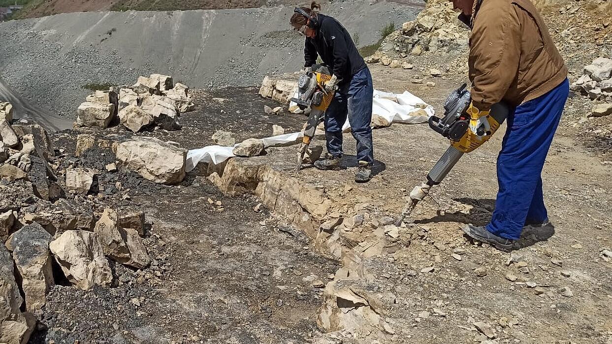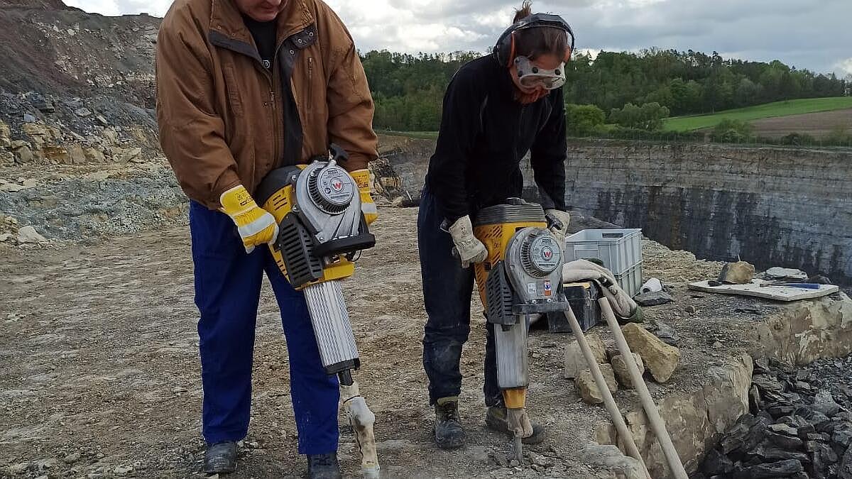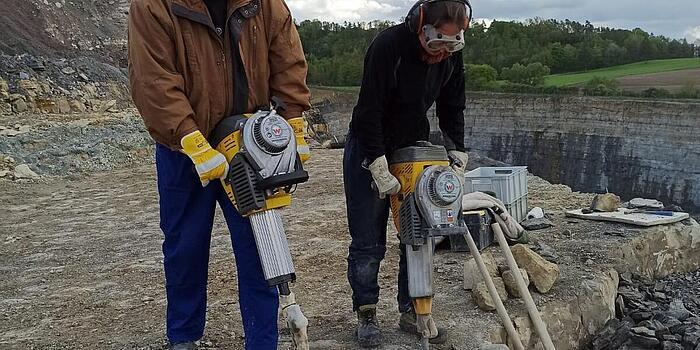 For many years, its predecessor, the BH24, was used in excavations on the Hohenloher Ebene, Baden-Württemberg, under the direction of the Stuttgart Natural History Museum. The quarry there is the fossil site with the highest diversity worldwide, including the oldest turtle fossil and various million-year-old dinosaur teeth and skulls. Always with us: our demolition hammer. The two BH65s are new to the team and replace the predecessor BH24. The hammers are used in the quarry to remove a 30-40 cm thick layer of dolomite stone. Thanks to their high individual impact energy and low hand-arm vibration, they are the ideal machines for this purpose. A truly special application story!